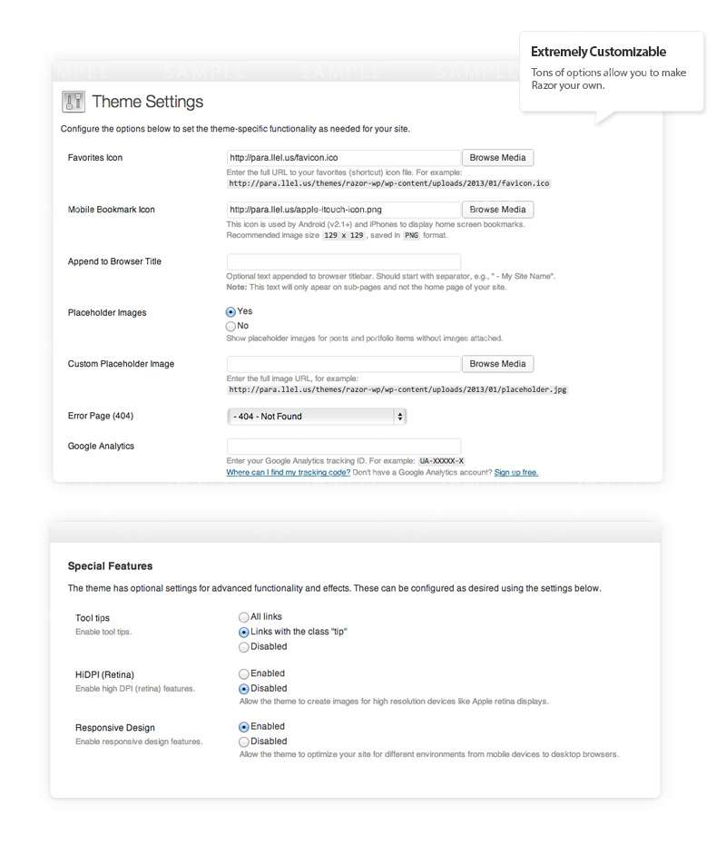 Extremely Customizable Razor has an incredible amount of features. Add your own favicon or 404 page. You can even add your own default images and much much more.